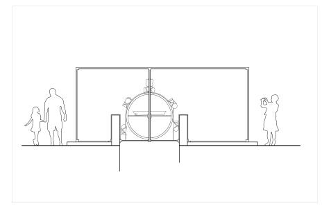 In order to achieve legibility at the site, we proposed using several glass panels that intersect with the site’s masonry. The etched glass would be lit from the edges using efficient LED lighting, which could be powered using solar energy captured at the site. Those panels would tell the story not only of the historic well and its function, but also the geology of the site, and the 21st century chlorination system.
