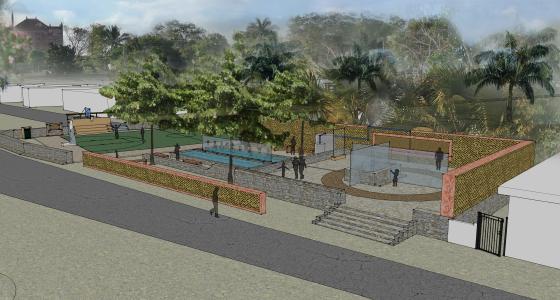During our visit to the town of Santa Elena, we were able to visit the sunny open plaza, see examples of traditional Mayan homes and colonial architecture. Finally, we visited a historic well site that had undergone a recent reconstruction effort. Fellow MSHP student Kathryn Clarke and I were extremely interested in the well site, called a Noria, both as an example of a cultural gathering place and as a historic technological site. Throughout the city of Santa Elena, we observed that the natural gathering places were the sunny, open plaza, the grassy yards surrounding the church, and several sport courts. A basketball court had also been constructed adjacent to the historic noria.